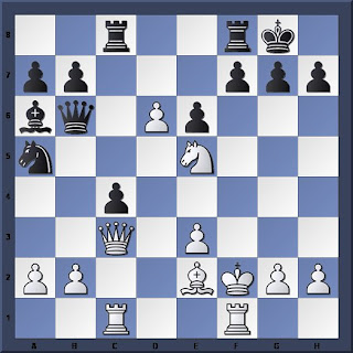 Seguiu-se 17. Cb5 a6 18. Bb6 Dd7. Pouco depois a superioridade posicional das brancas transformou-se em superioridade material e o jogo não teve mais história.