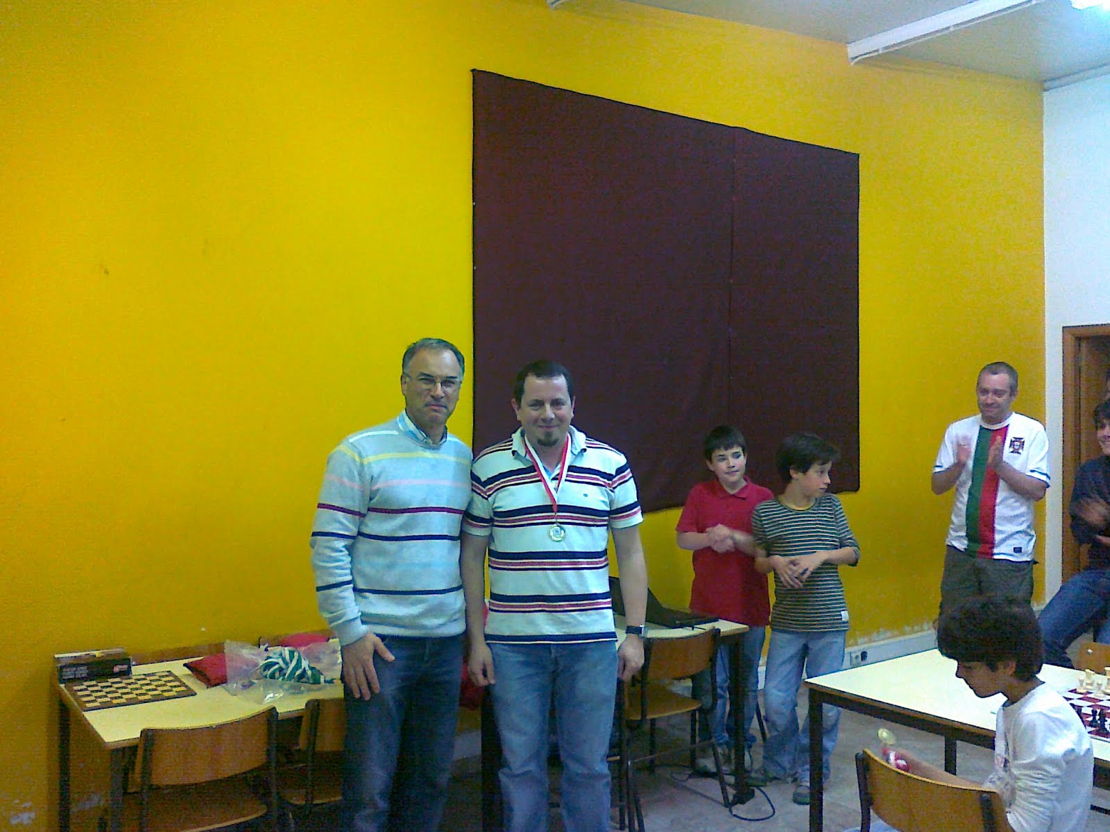 Francisco Faria com uma avaliação escolar de níveis quatro e cinco foi também competente na resoluçaõ dos exercícios de xadrez e foi contemplado com um tabuleiro de coleção. O mesmo sucedeu ao seu colega José Carlos Ferreira cuja fotografia não ficou em condições de se expor.