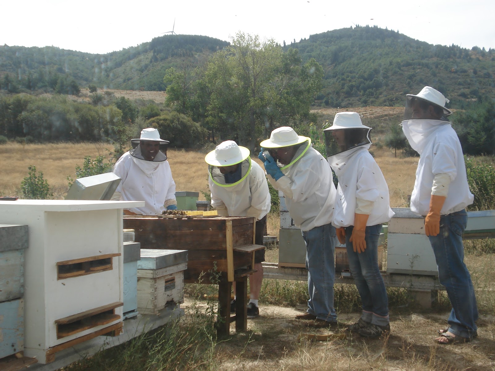 | Eu sou aquele que está com as trombas quase enfiadas na colmeia (e de calções). |