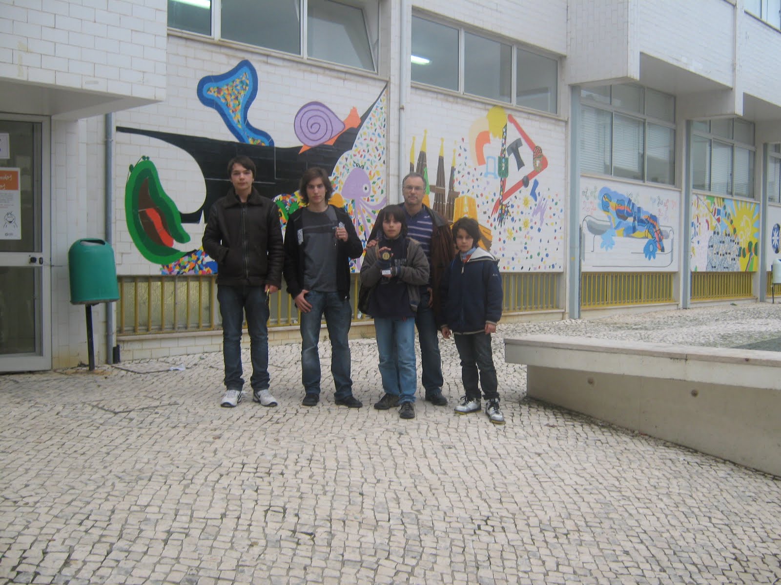 A nossa equipa, constituída pelo prof. e motorista Fernando Costa e os seus atletas no pátio do Externato da Benedita.